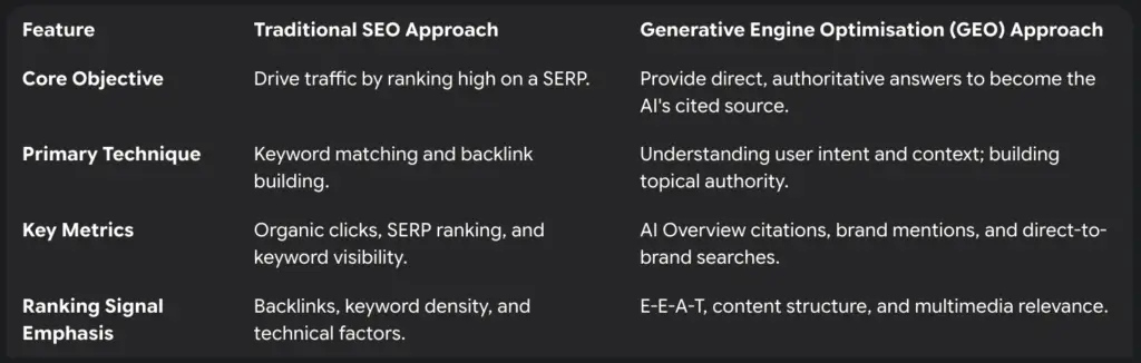 Generative Engine Optimisation is not a replacement for traditional SEO but a strategic evolution. The foundational elements that make a website successful for users also make it more accessible and trustworthy for AI. Ignoring the basics will prevent a site from ever being considered as a source for an AI answer.